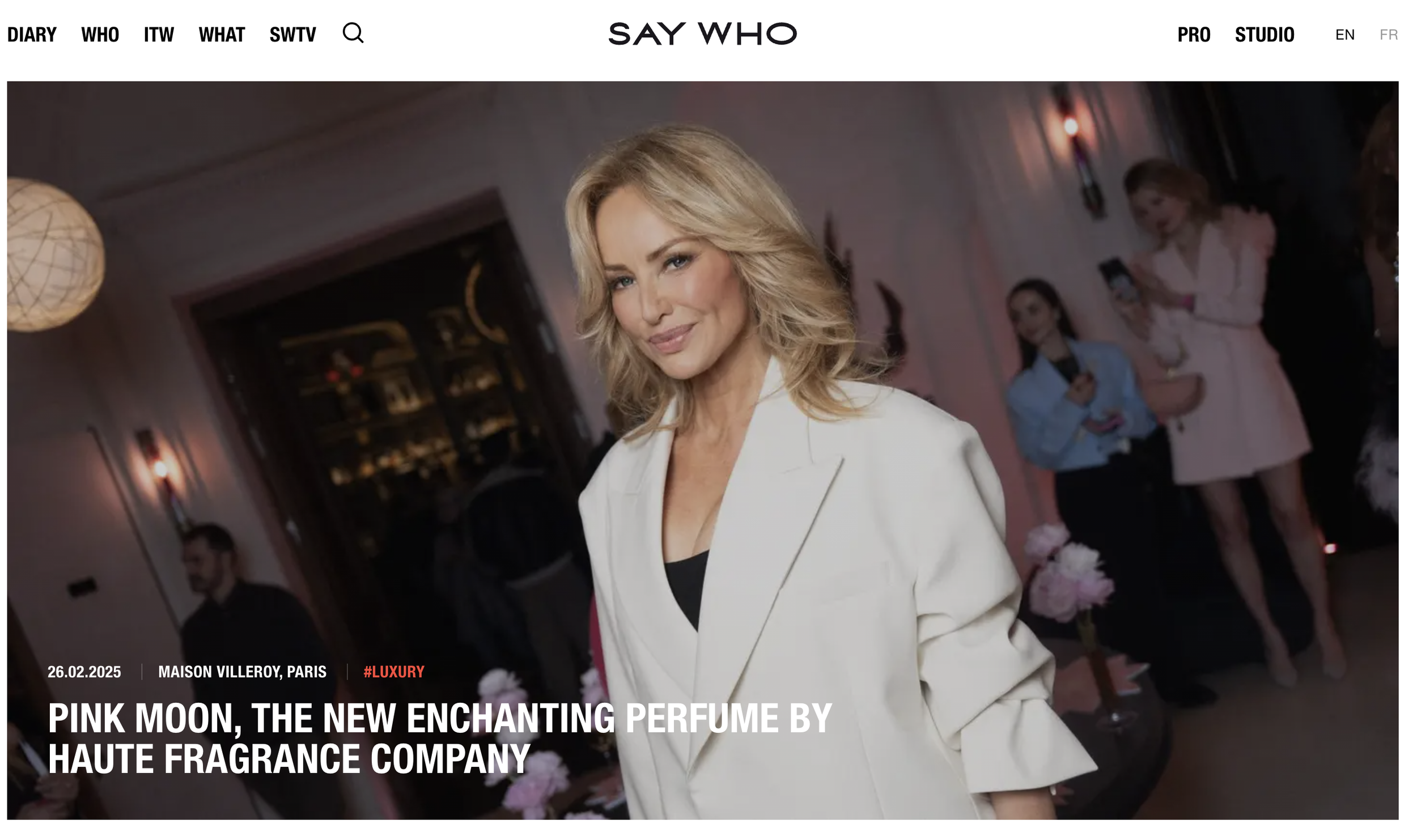 Paris February 25 : Haute Fragrance Company “Pink Moon” launch in Paris at Maison Villeroy. Music performance (DJ set) in front of Adrianna Karembeu , Fragrance professionnals and aficionados. A amazing set design , several experiences and a special creation by Yazid Ichemrahen.